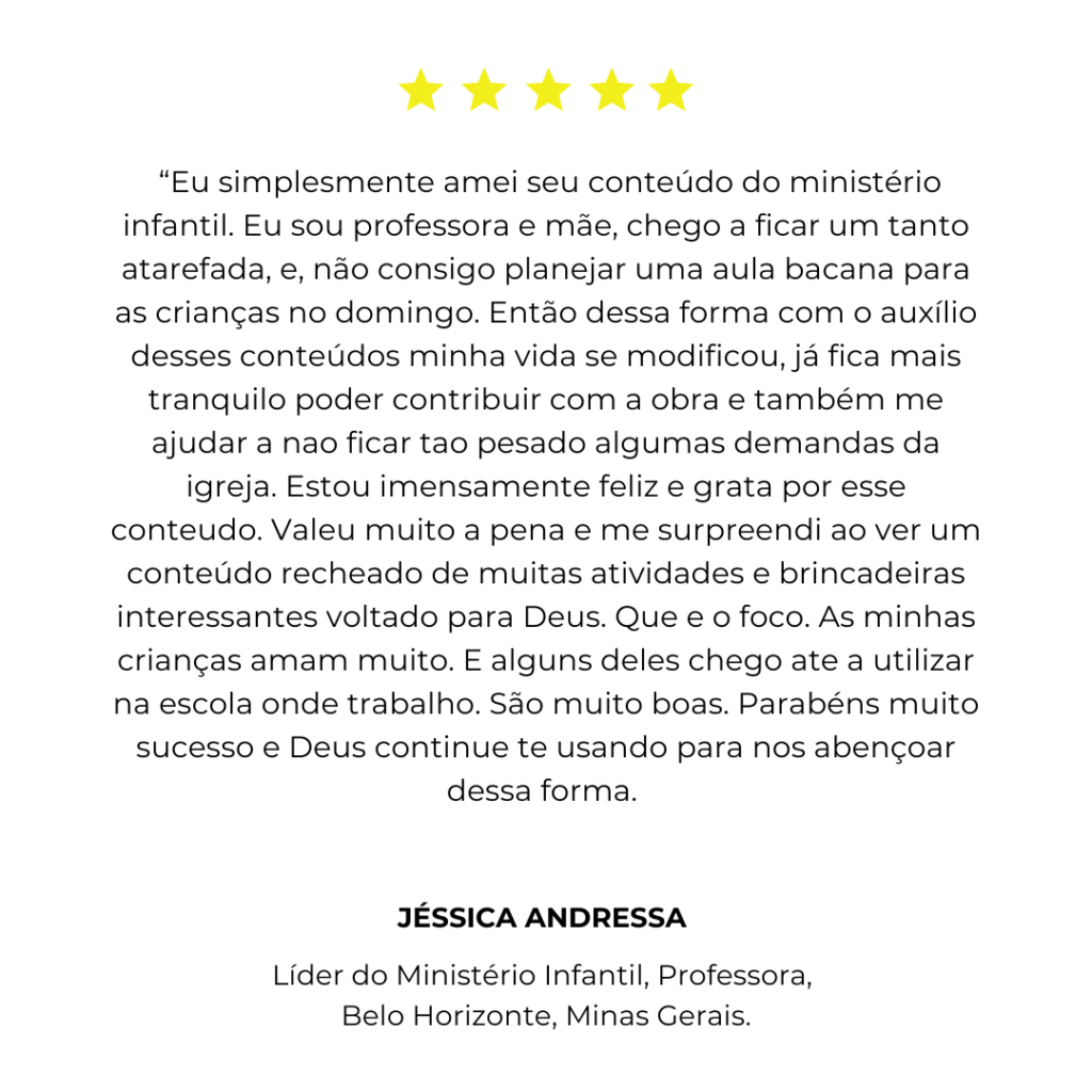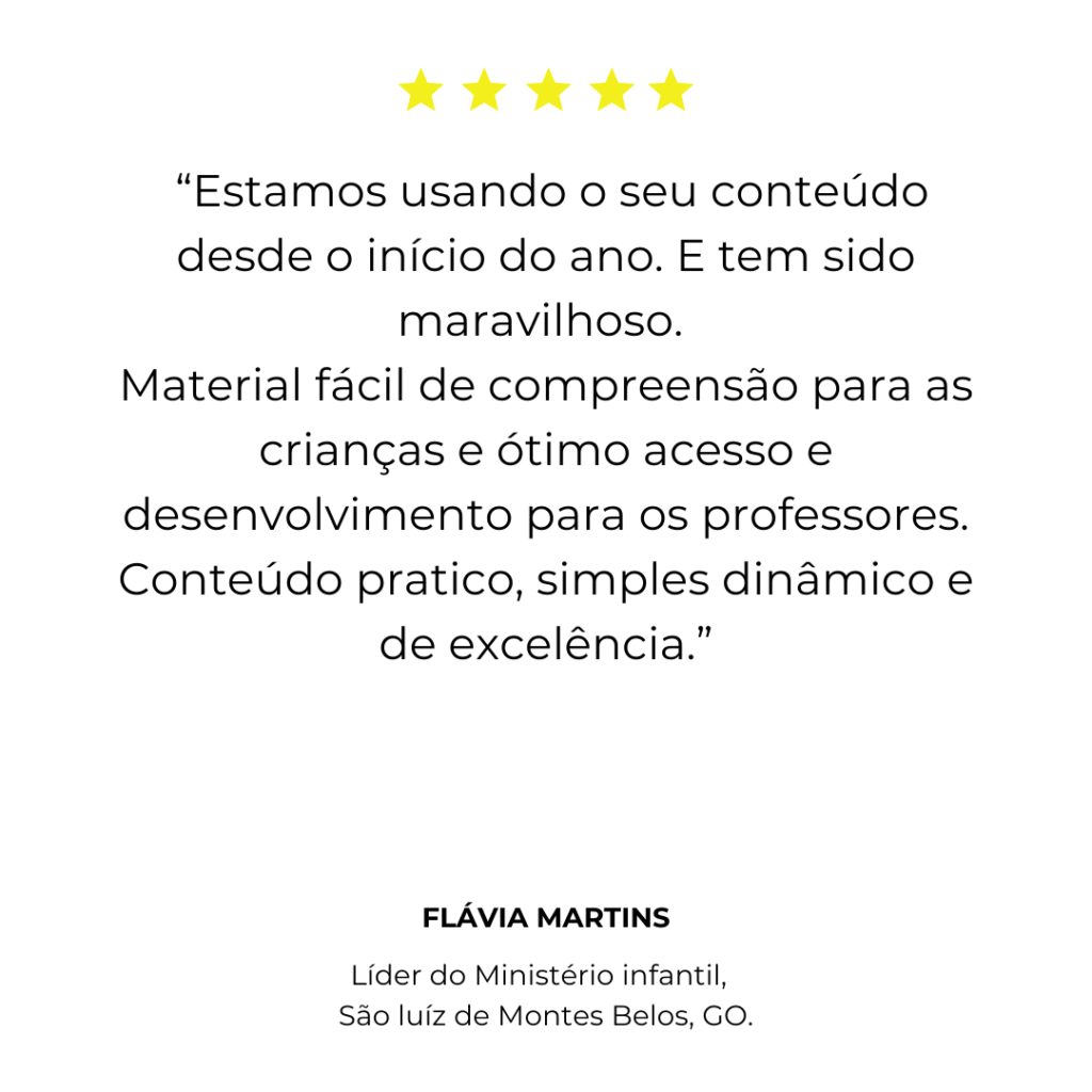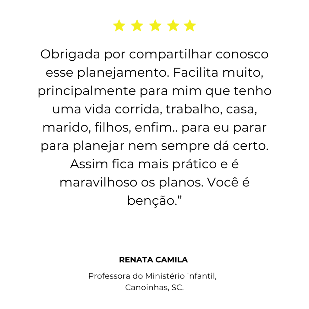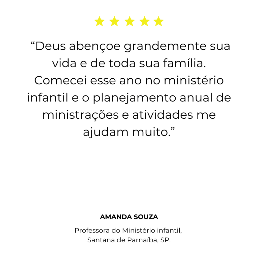 Você terá acesso a um planejamento completo para o ano inteiro – com aulas semanais, cultos infantis, datas comemorativas, louvores, brincadeiras, apresentações e histórias bíblicas.