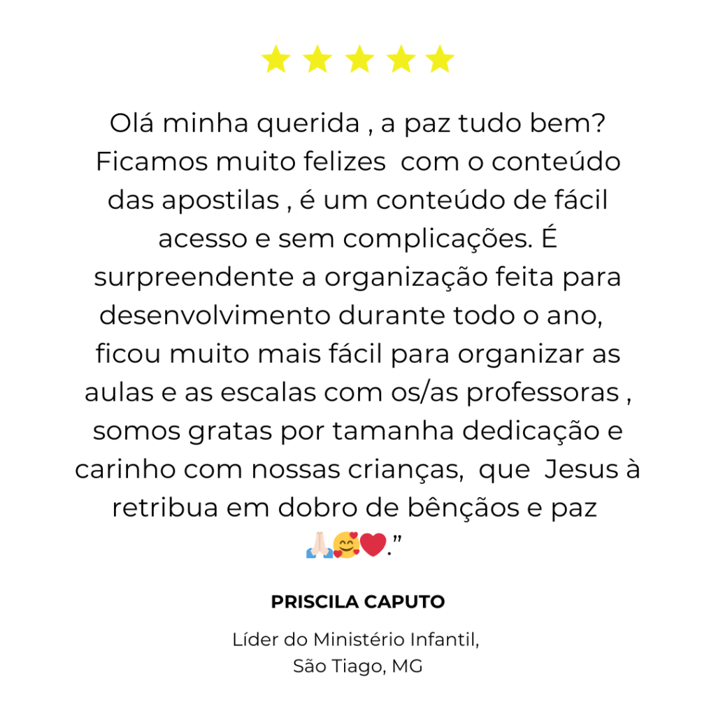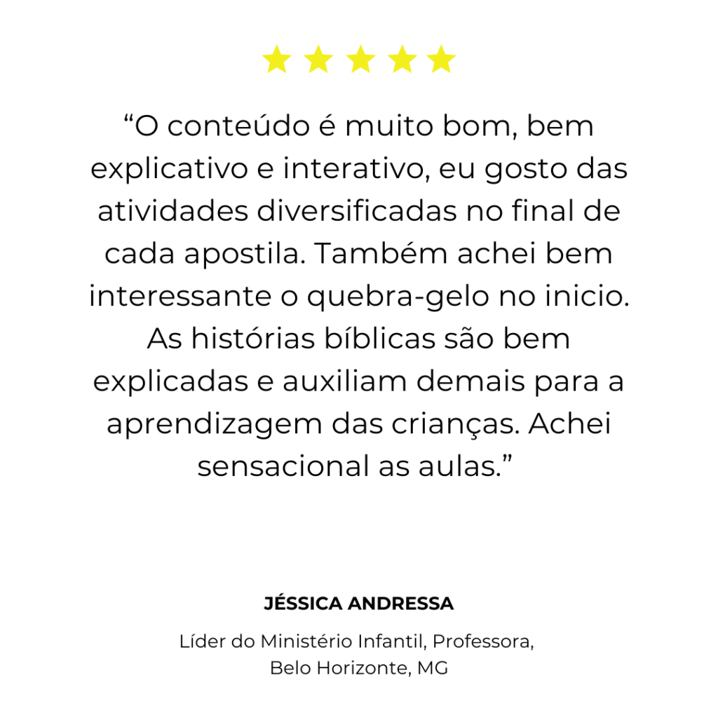 Com planos de aula totalmente Cristocêntricos, fundamentados na Palavra, cada detalhe foi cuidadosamente preparado para proporcionar um ensino que transforma vidas e fortalece o seu ministério.