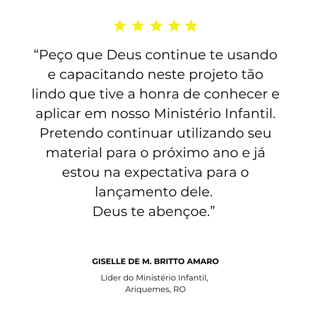 Desde 2018 compartilhando os mais variados conteúdos relacionados ao Ministério Infantil, tudo para contribuir com os ensinamentos da Palavra de Deus às Crianças.