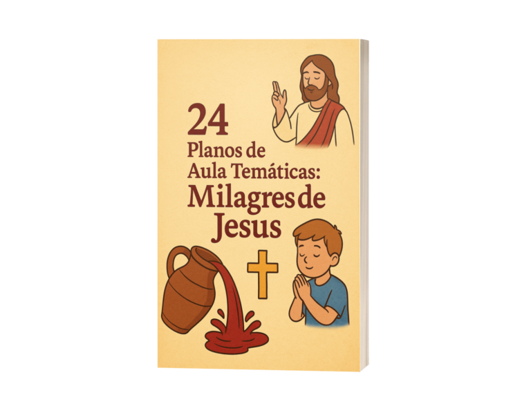 • 24 planos de aula temáticas: Milagres de Jesus - Aulas focadas nos milagres de Cristo, com aplicações práticas e atividades que impactam o coração das crianças.